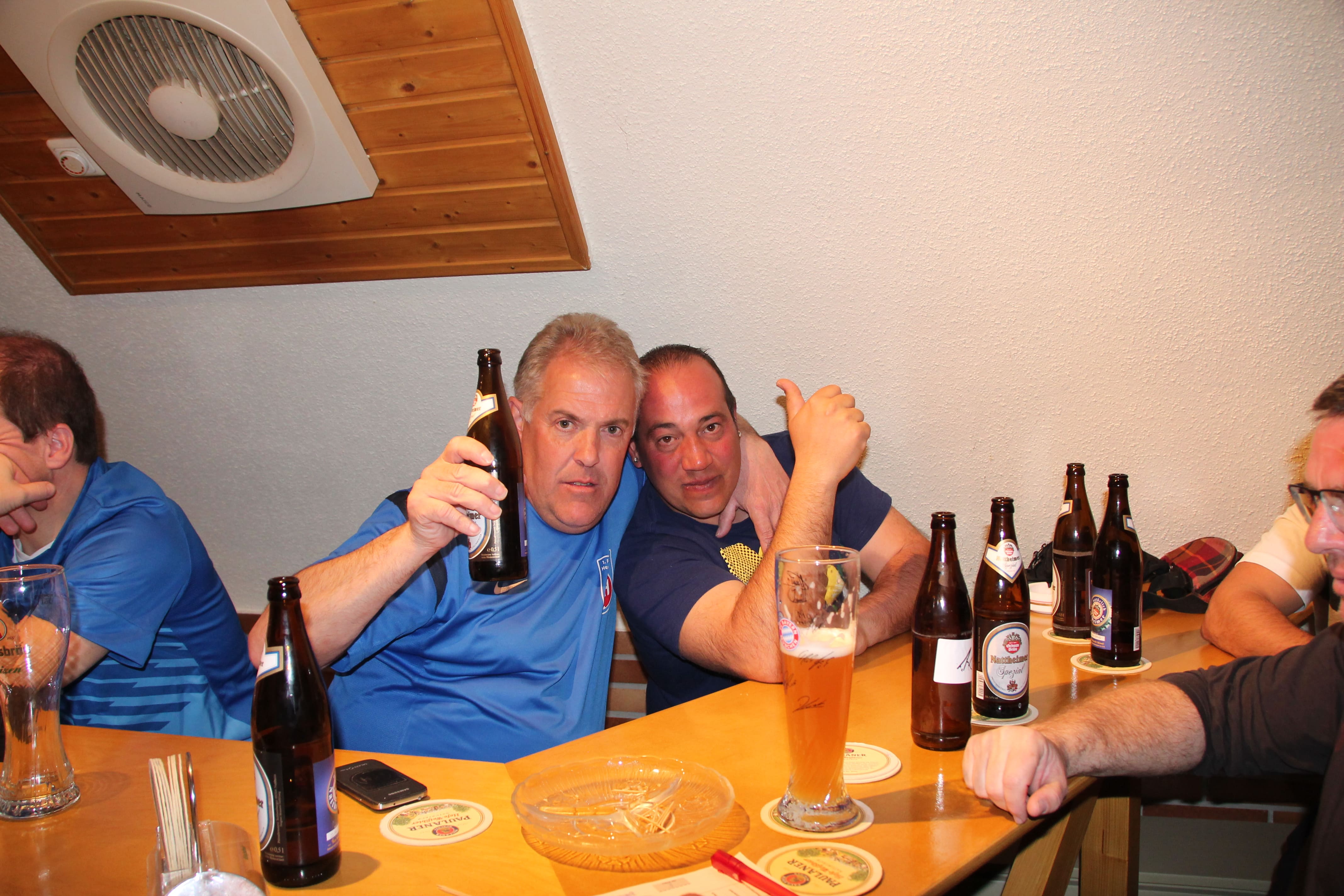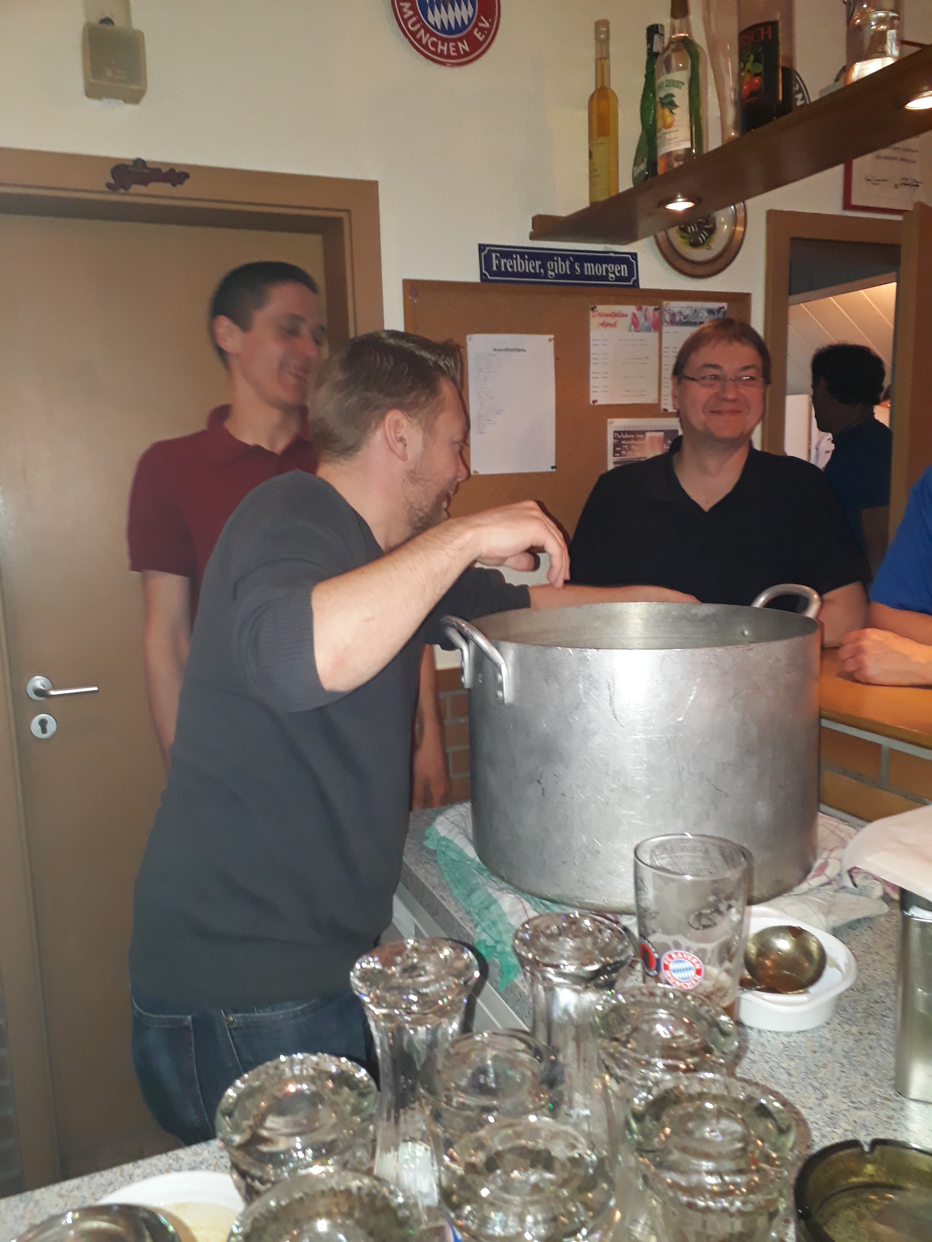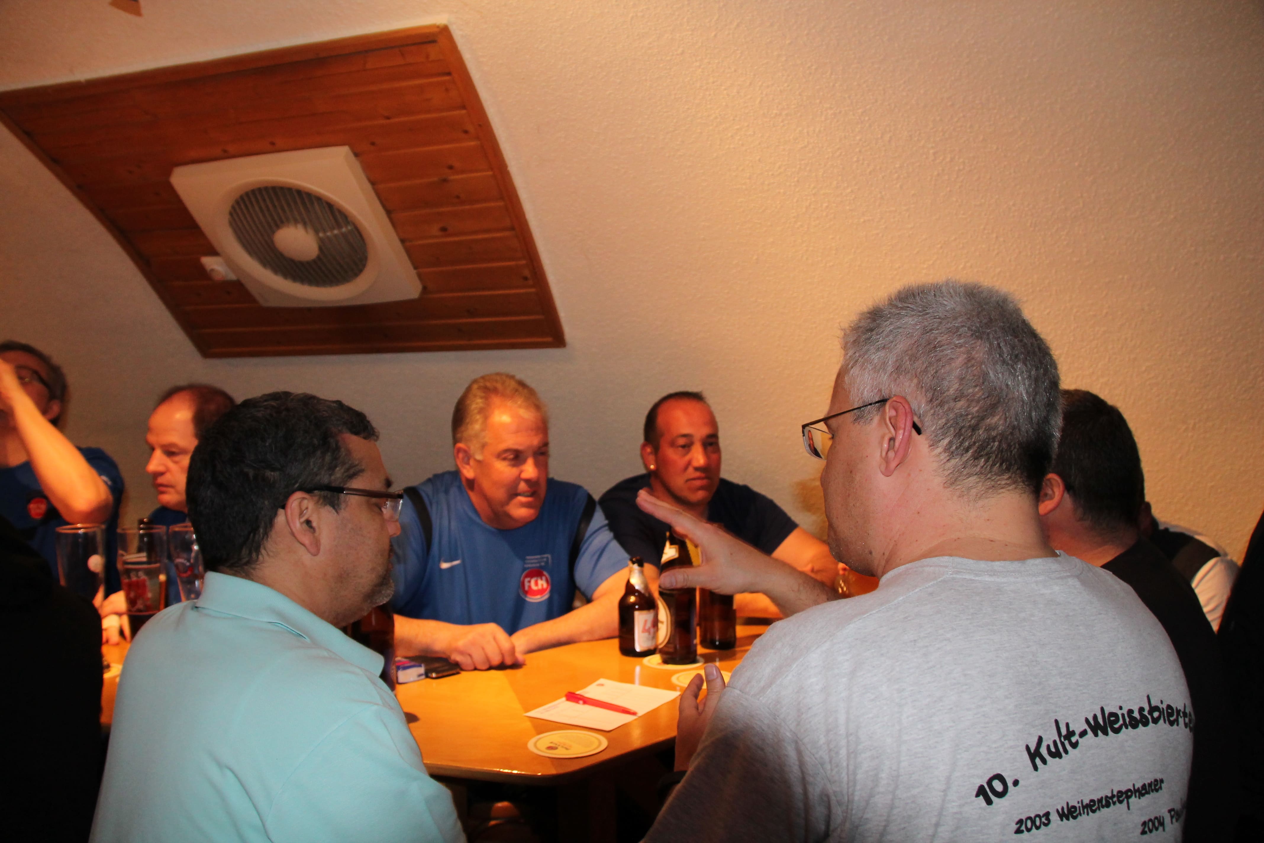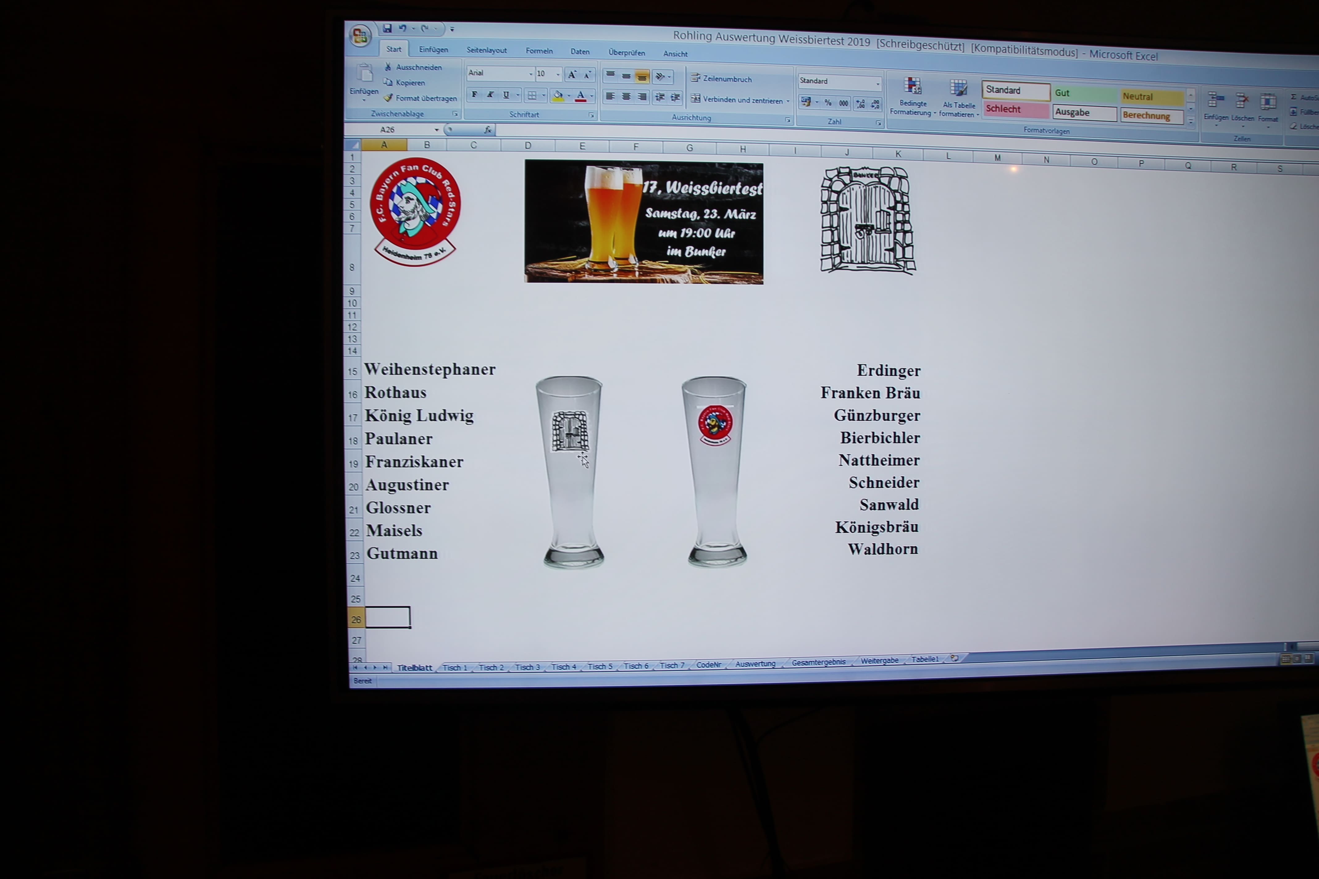 Die Testtrinker teilten sich in fünf 5er und zwei 4er Gruppen auf. Die Stimmung war wie immer sehr ausgelassen und man konnte es kaum erwarten bis das nächste Bier auf die Tische kam. Wie immer wurde es mit dem fast schon legendären „Bier, Bier, Bier, Bier....“ geordert. Es gab wieder reichlich Snacks zwischendurch und in der Halbzeit bekamen wir Gulasch von Bernd Schleicher der Metzgerei unseres Vertrauens. Nachdem 18 verschiedene Weissbiere verkostet und bewertet wurden gab es ein Endergebnis. Maisel`s Weisse setze sich mit dem denkbar knappen Vorsprung von nur einem Punkt vor Schneider Weisse an die Spitze und gewann diesen 17. Weissbiertest mit 1.549 Punkten. Wie schon letztes Jahr belegte das Weissbier von Königsbräu den letzten Platz. Auch nach der Weissbierprobe ging die Party im Bunker weiter. Es wurde noch bis 5 Uhr morgens mit kühlen Erfrischungsgetränken und Musik gefeiert. Der 17. Weissbiertest war also wieder ein voller Erfolg und wir freuen uns jetzt schon auf Nummer 18. Ein besonderer Dank an dieser Stelle an unser Organisations - und Bedienungsteam hinter der Theke, Dennis Stampf und Johann Schuster. Ebenfalls ein großes Danke an Mike der zum wiederholten Male die Auswertung und Präsentation in die Hand genommen hat.