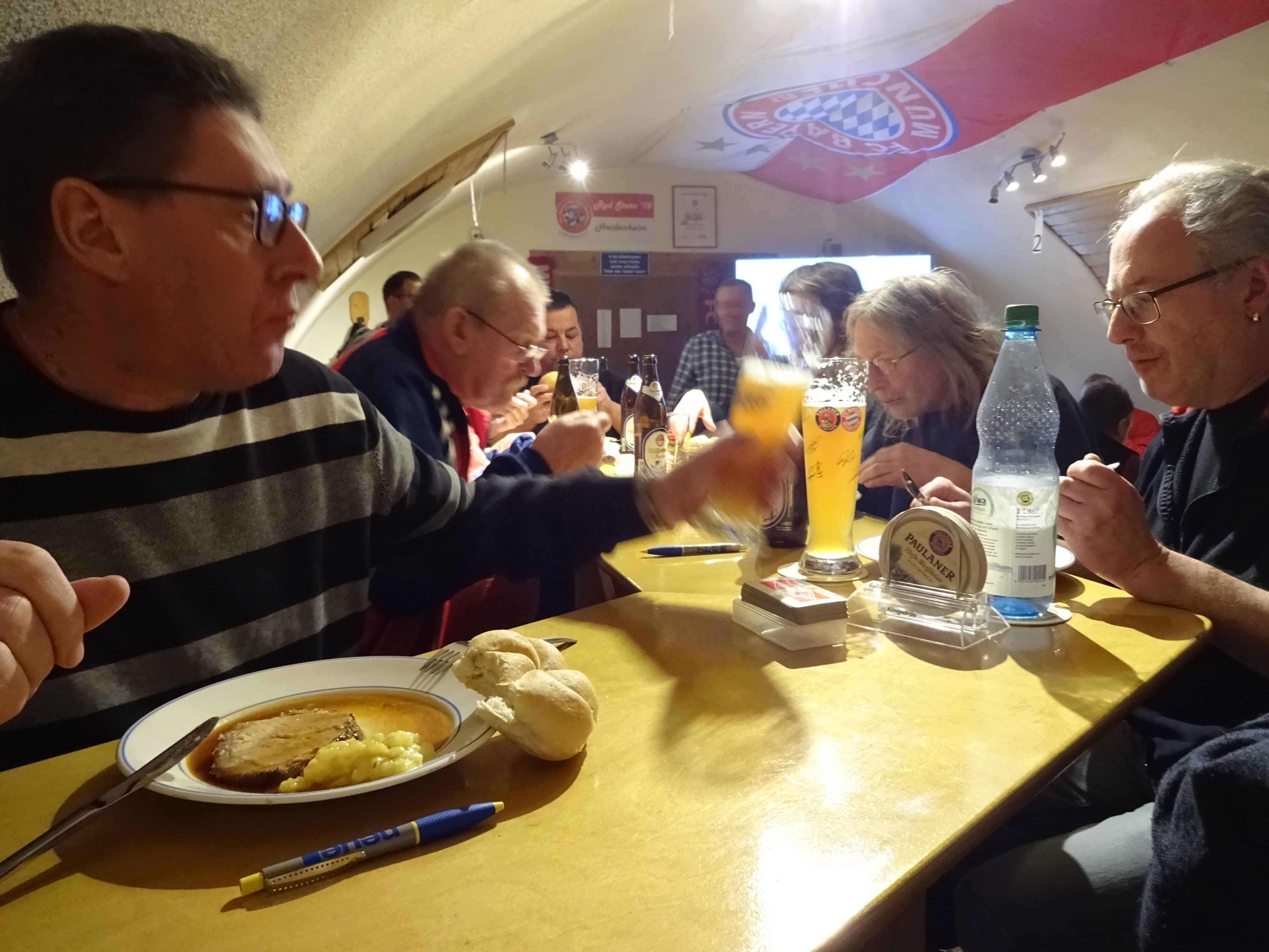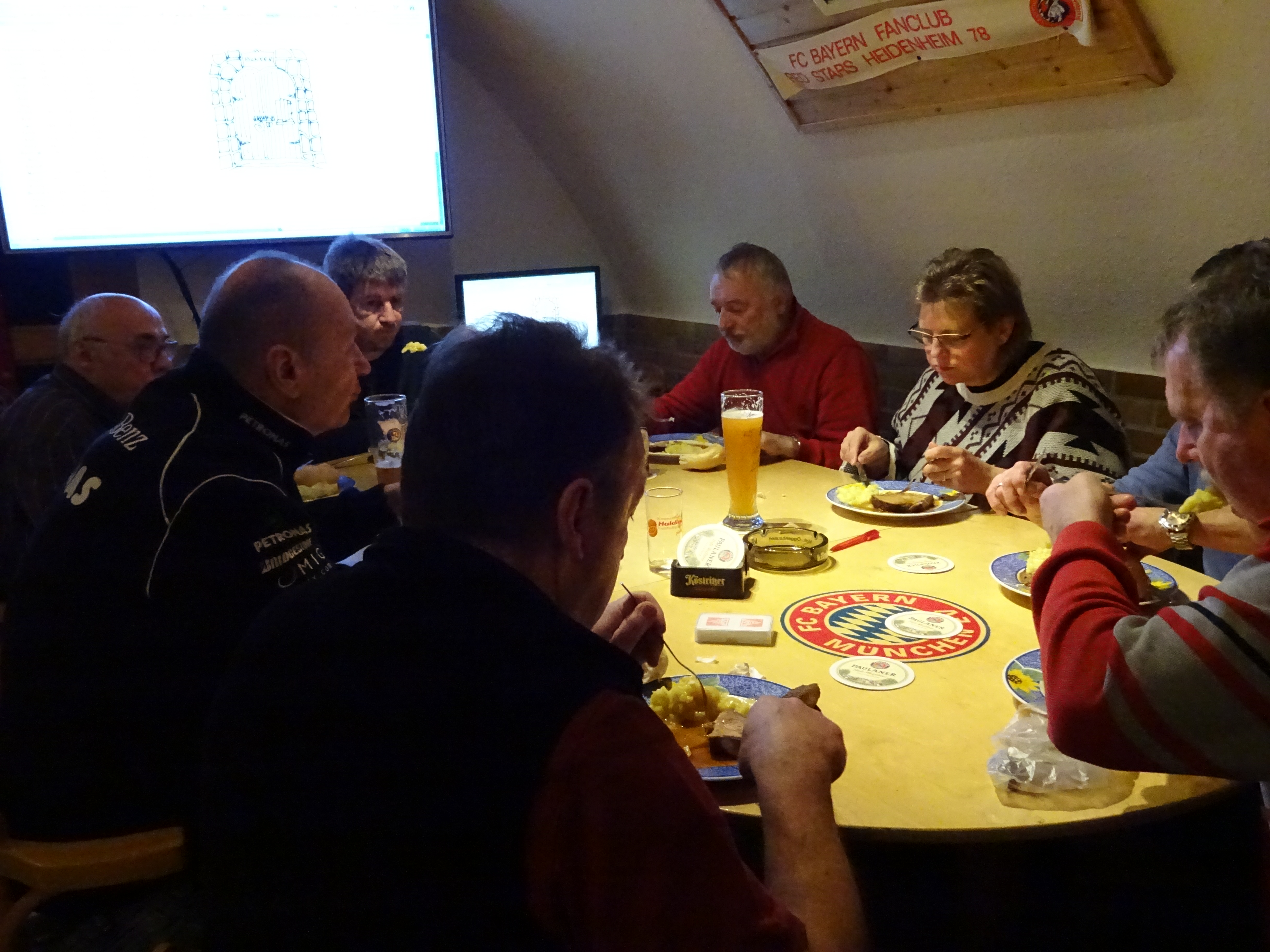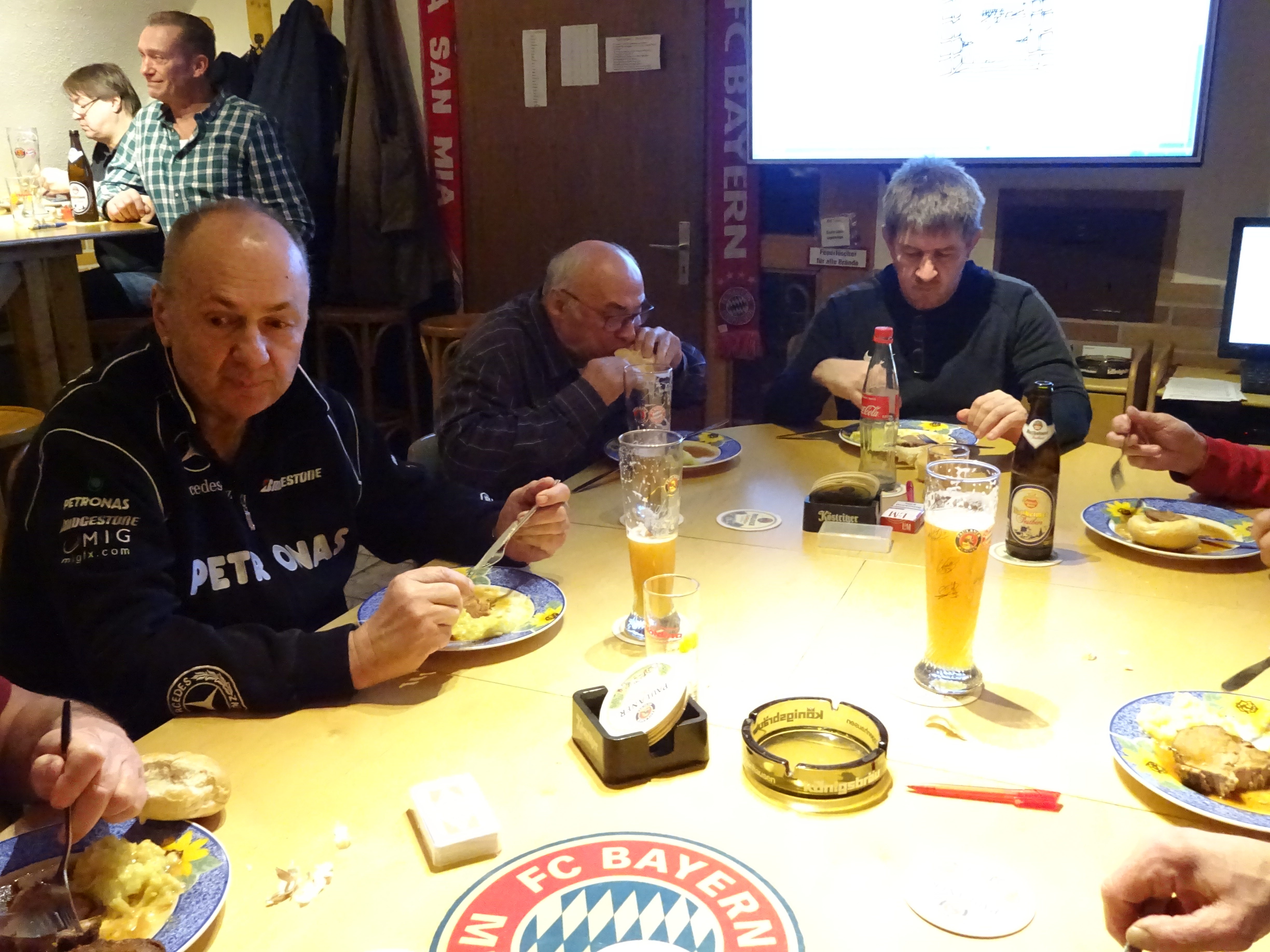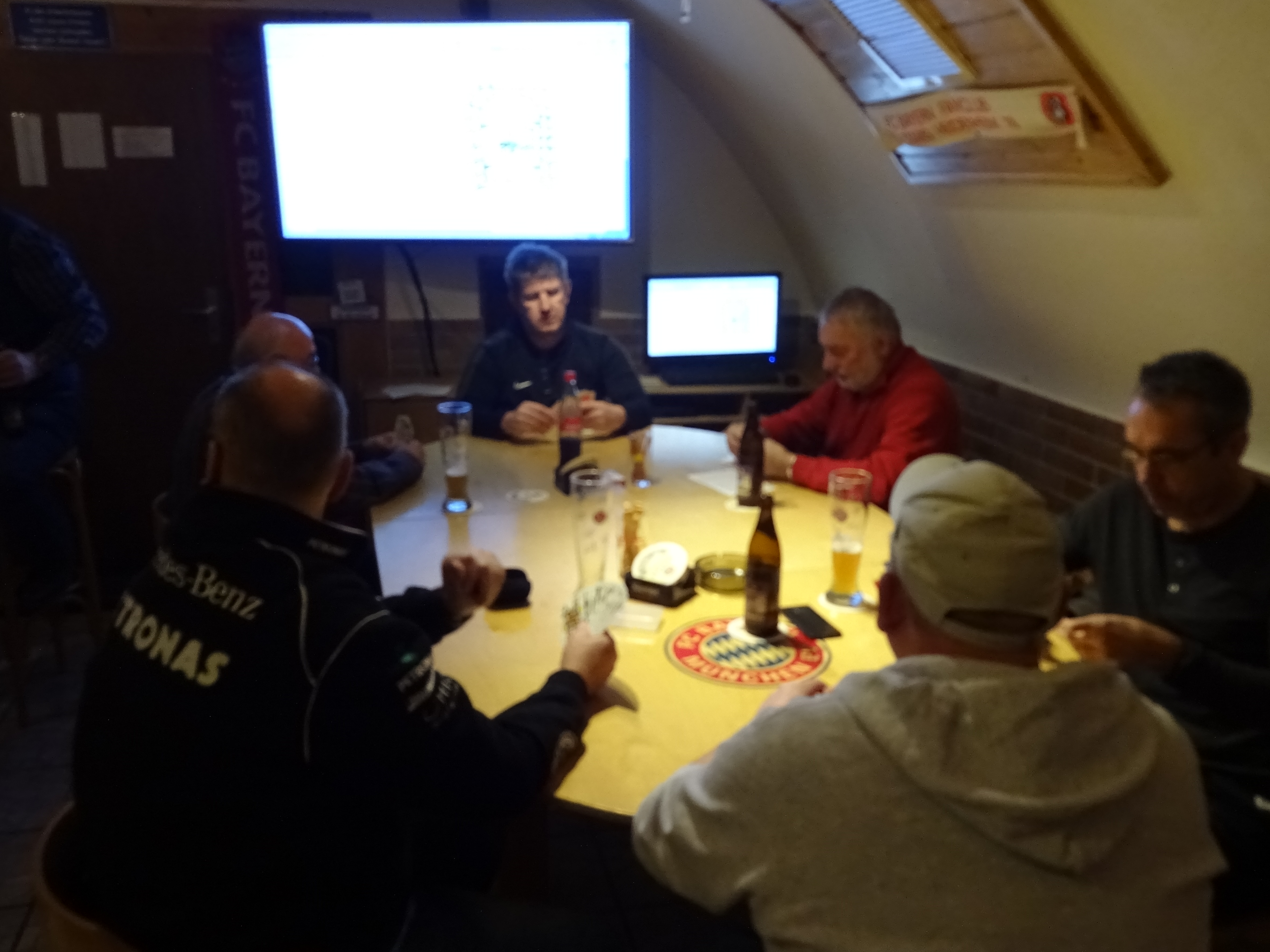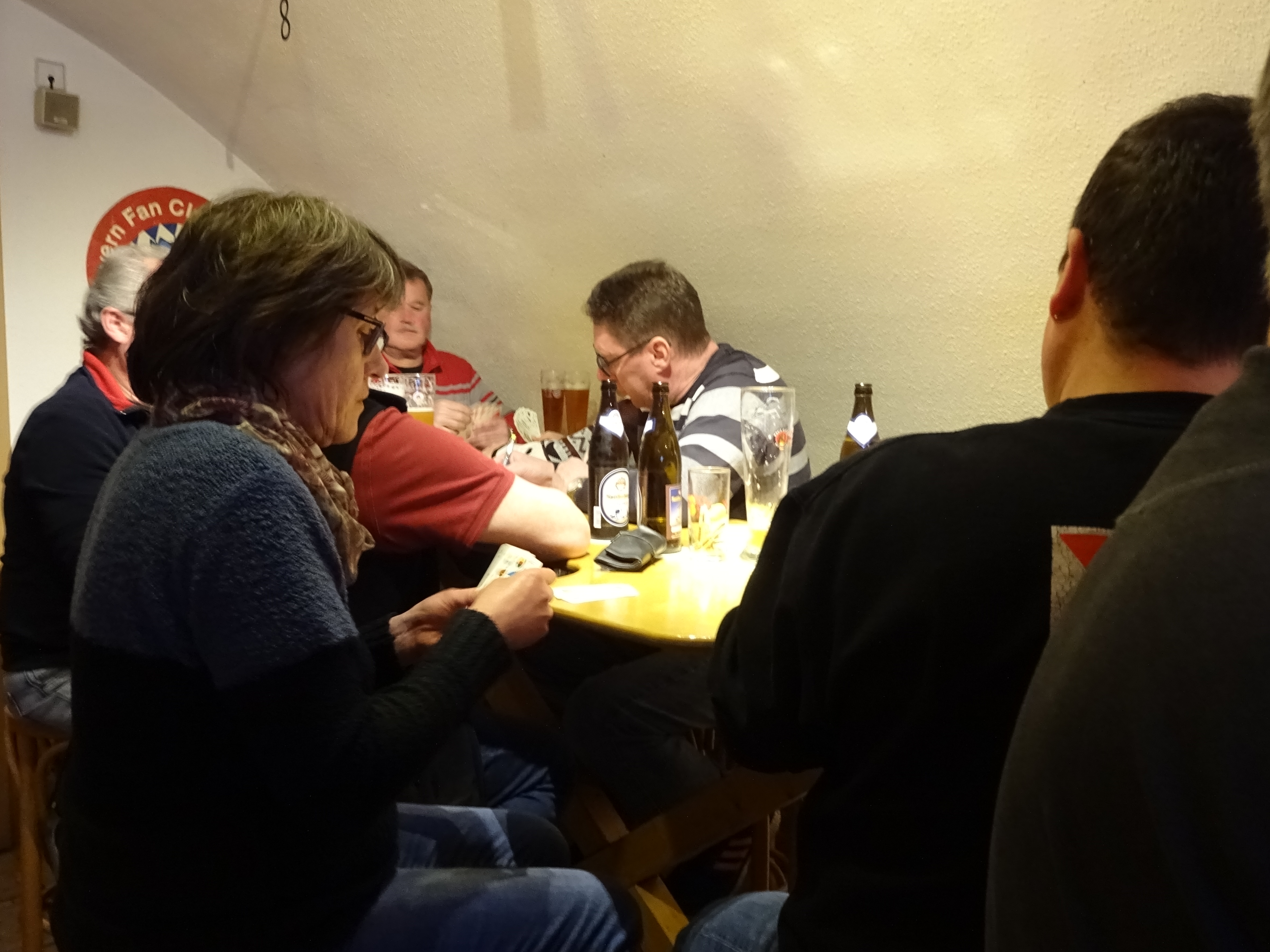 Wie immer war es ein mehr als stimmungsvoller Abend, Gabi und Wegga hatten das Geschehen rund um die Theke bestens im Griff. Die größte Sauerei des Abends gab es dann in der Halbzeit in Form einens Schweinebraten?