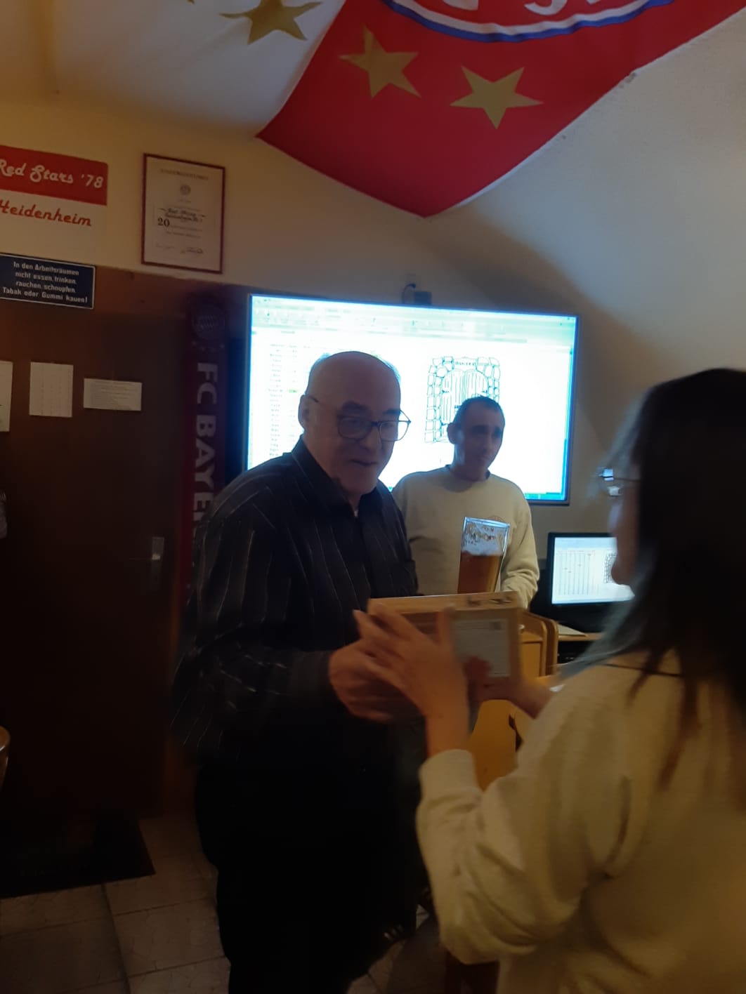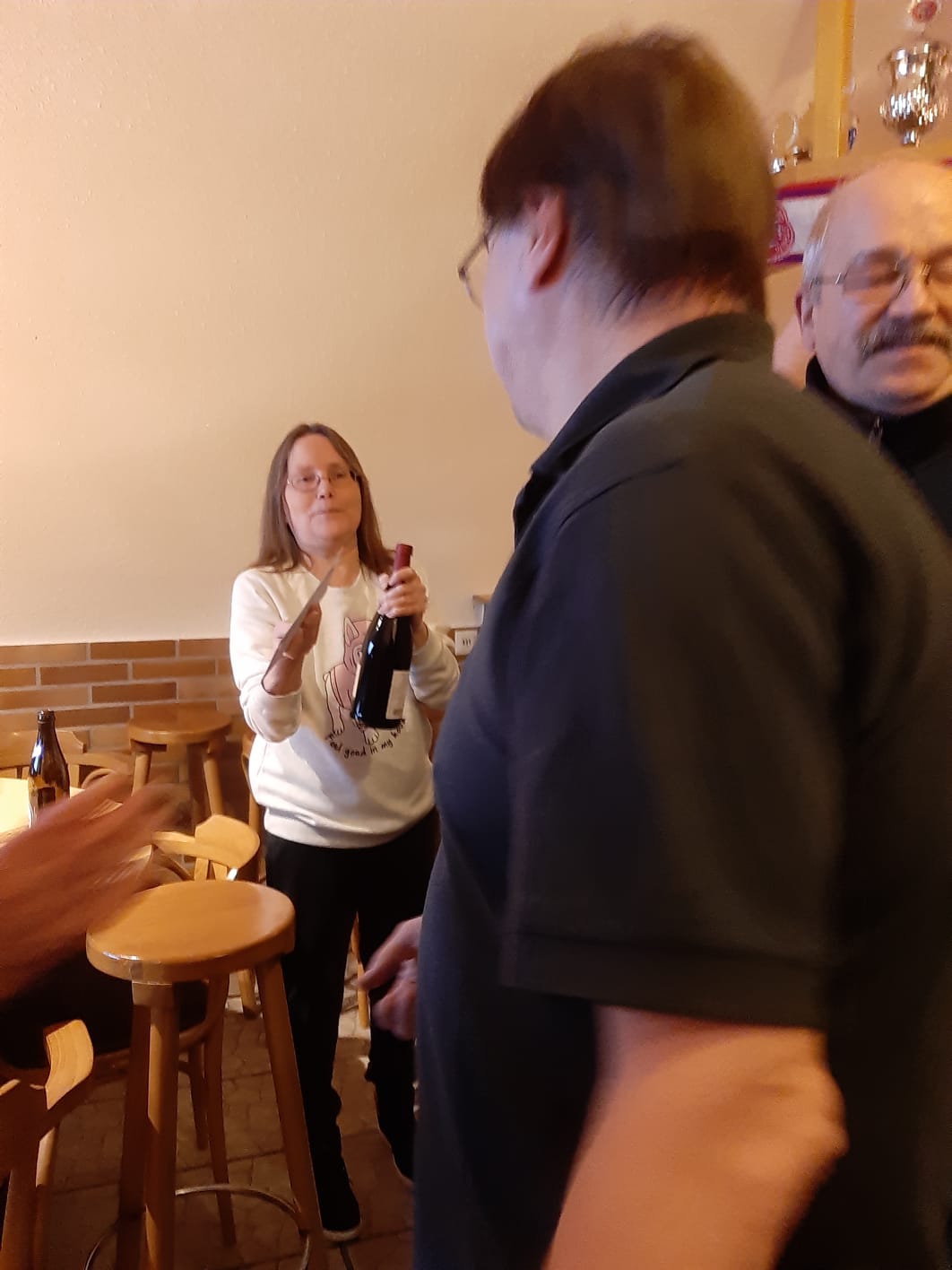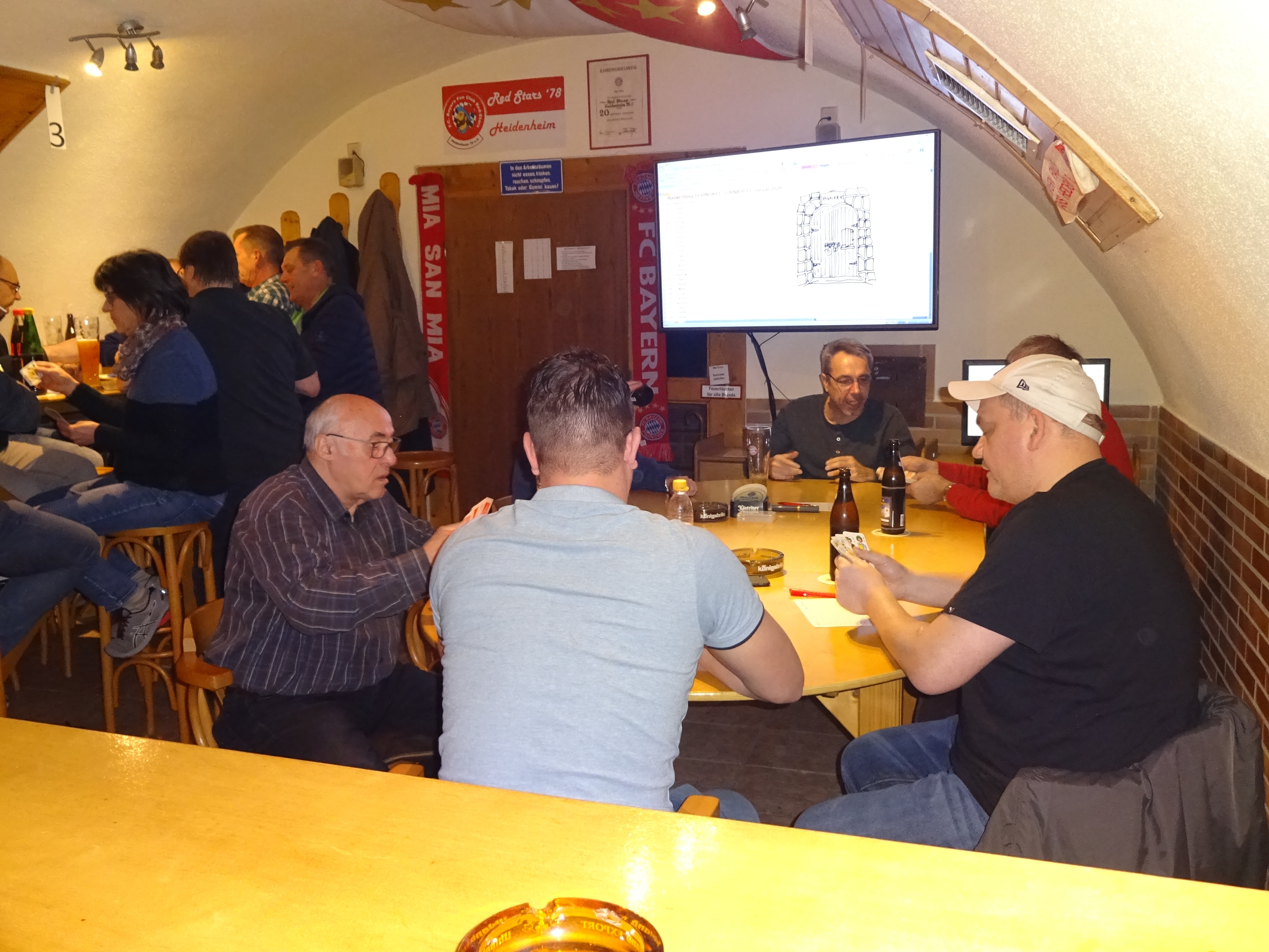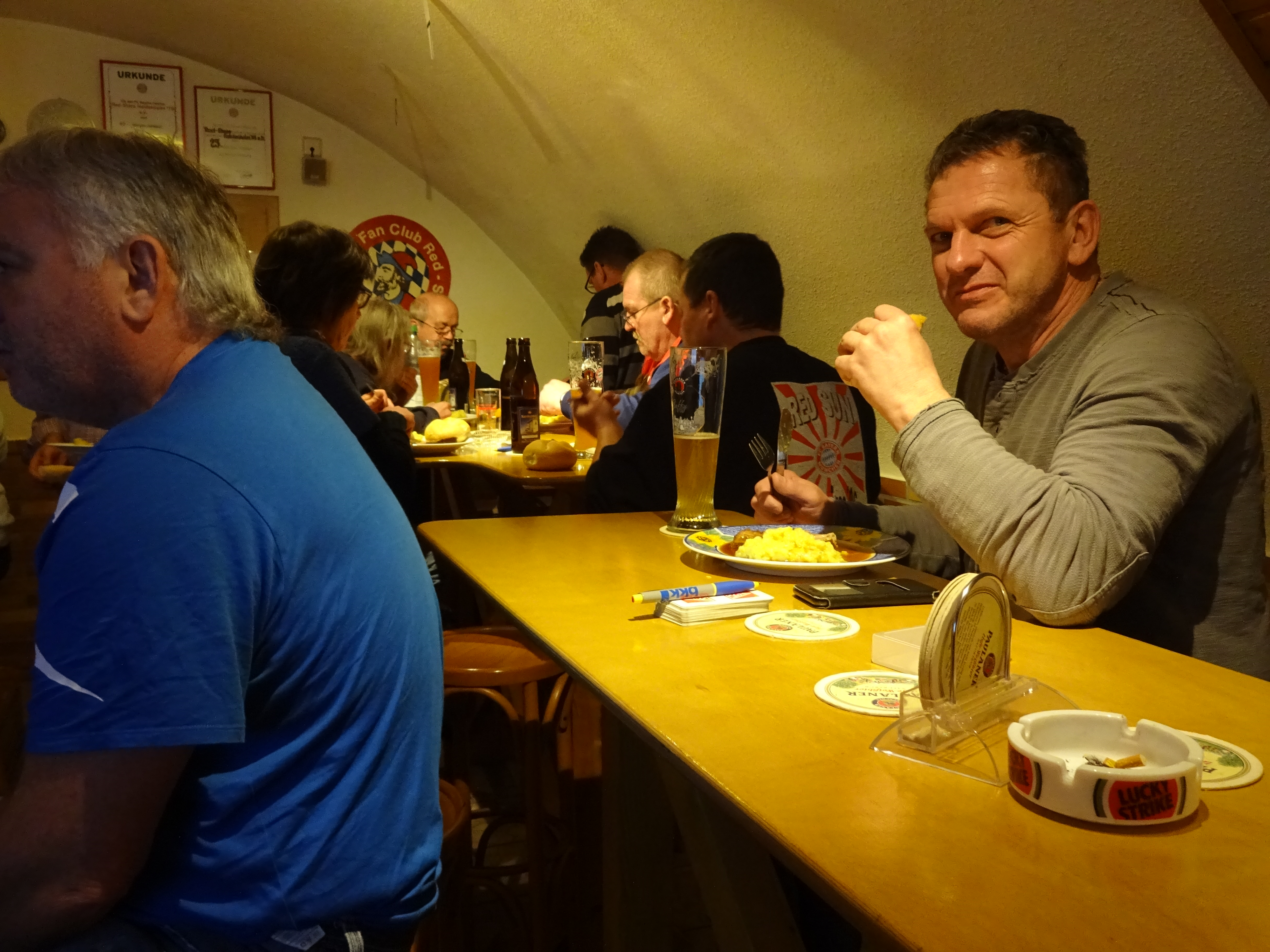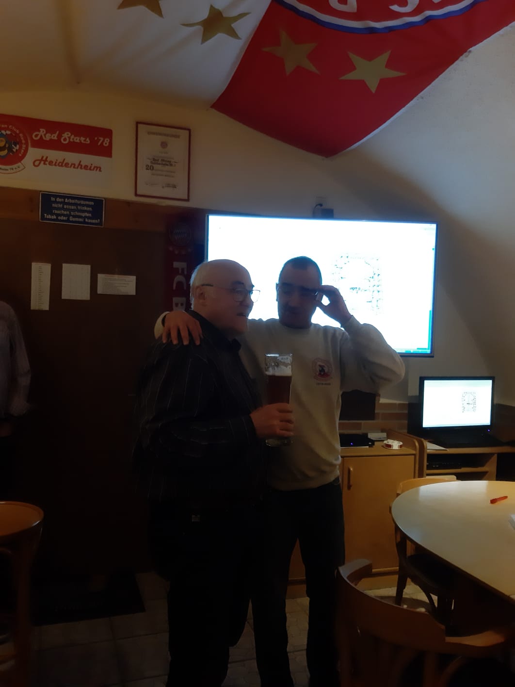 Wie immer war es ein mehr als stimmungsvoller Abend, Gabi und Wegga hatten das Geschehen rund um die Theke bestens im Griff. Die größte Sauerei des Abends gab es dann in der Halbzeit in Form einens Schweinebraten?