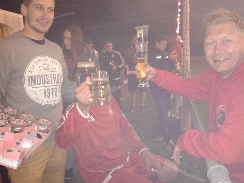 Beim 8. Elfmeterturnier der Bayern Bazis Härtsfeld auf dem Sportgelände in Dischingen haben wir uns mehr als wacker geschlagen. Das Team Red Stars Heidenheim 2 konnte immerhin bis ins Viertelfinale vordringen, scheiterte dann aber an "Ranzasport". Team Red Stars Heidenheim 1 erreichte sogar das Halbfinale, unterlag dann aber dem späteren Turniersieger Bayern Bazis Härtsfeld. Der 3. Platz konnte dann aber noch mit einem 5:3 Sieg gegen die Schlosspanther Höchstädt gefeiert werden. Natürlich machte man nich nur auf dem Rasen eine glänzende Figur, sondern auch am Bierstand. Über die getrunkenen "Joghurtbecher" in Form von Kirsch und Birne legen wir lieber den Mantel des Schweigens