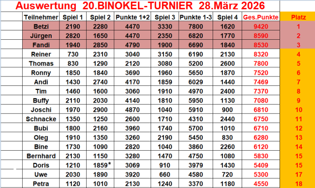 Nach mehrjähriger Pause war es endlich wieder soweit. Am 22. März fand unser 19. Binokelturnier statt ♥️♠️♦️♣️